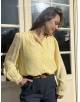 Blouse bleu marine légère, ornée de délicats détails de broderie sur les manches et le devant des boutons .