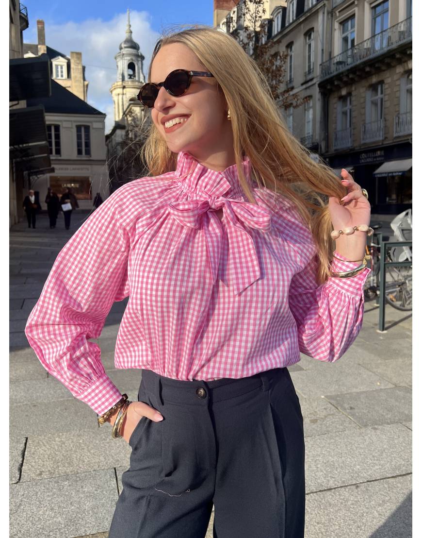 Blouse vichy rose à nœud, pour une touche féminine et élégante à votre look. Légère et printanière, elle s’adapte parfaitement à vos tenues de saison.