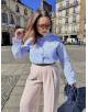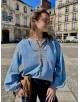 Blouse à col collerette, ornée de rayures bleu et blanc, élégante et très tendance. Sa coupe légère et confortable en fait une pièce facile à porter au quotidien.