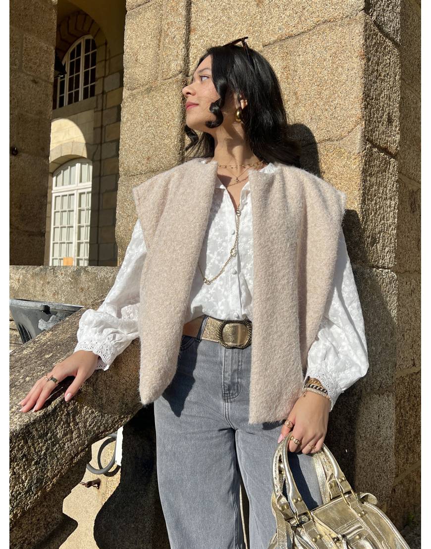 Gilet sans manches avec poches beige, On aime sa coupe structurée et son effet laine bouillie, ultra tendance cette saison.