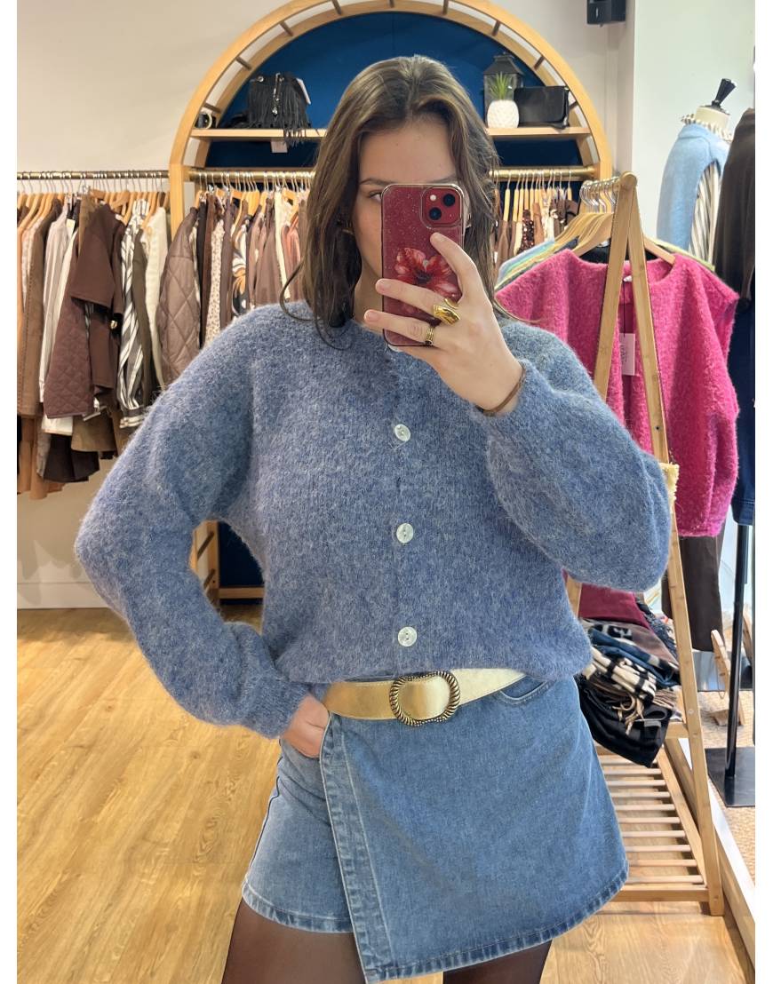 Ce gilet en laine, à la fois doux et chaud, est parfait pour la saison. Sa teinte bleu ciel apporte une touche chaleureuse et résolument tendance à vos tenues d’automne-hiver. Polyvalent, il se porte aussi bien ouvert en gilet que fermé comme un pull.