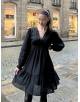 Cette robe courte à paillettes dorées se distingue par son éclat raffiné. Sa coupe féminine sublime la silhouette et en fait une pièce forte, idéale pour briller lors de vos occasions spéciales.