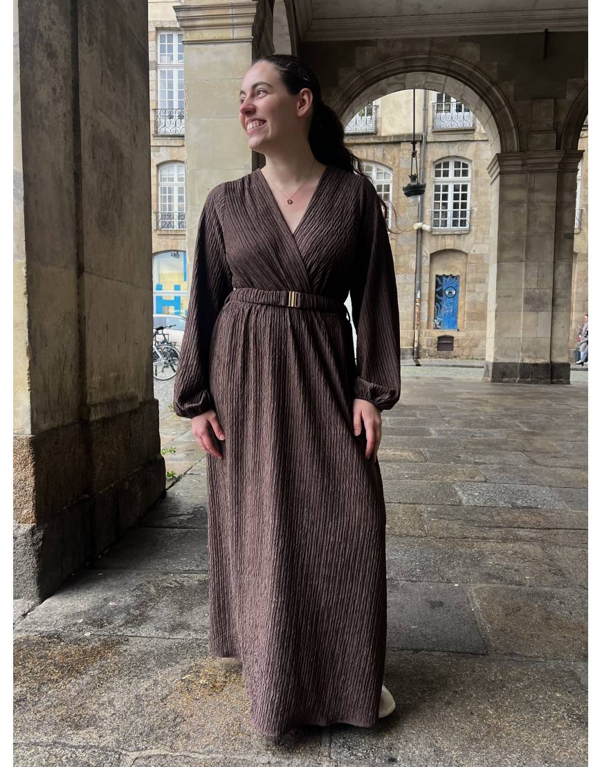 Robe longue avec ceinture chocolat